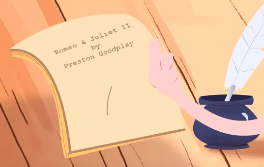 A transcript of it may be first seen in the Teaser Trailer, and it was later performed in the "Romeo & Juliet II: Love Resurrected" episode.